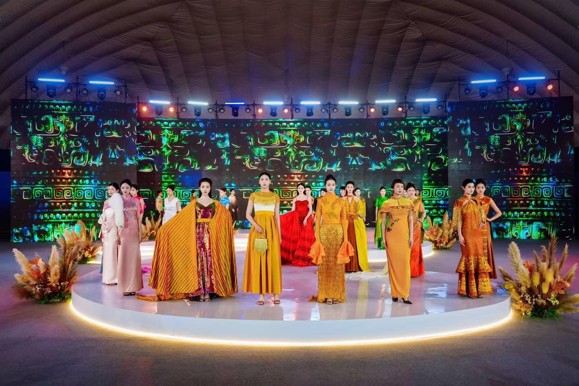 活动的核心视觉高潮,是分两个篇章呈现的六十套“商都华服”。设计团队对郑州商城考古出土的典型文化符号如杜岭方鼎的兽面纹、金覆面的璀璨、甲骨文的笔画、青铜器的几何感等进行了严谨而大胆的美学解构与重组。这些符号转化为精美的刺绣、面料肌理、结构性剪裁乃至配饰造型。第一篇章华服侧重礼仪性与艺术化表达,彰显王都气象;第二篇章则转向生活化与年轻化设计,让玄鸟纹样飞入日常衬衫,让青铜色系点缀现代裙装。这场大秀的本质,是一场“可穿戴的考古展”,让文物纹样真正走入生活场景。